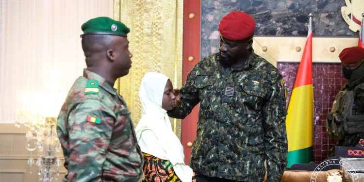 Le Président de la Transition, le Colonel Mamadi Doumbouya a reçu en audience, dans l’après de ce mardi, 21 juin 2022, au Palais Mohammed V, Mlle Safiatou Diallo, qui a perdu ses deux parents dans un incendie, à Yimbaya-Tannerie, et ce, alors qu’elle affrontait les épreuves du BEPC.