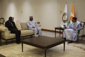 En marge de ce sommet, le Président du Conseil National de la Transition a été reçu en audience par le Président de la République du Niger. Son Excellence Monsieur Mohamed BAZOUM, après une heure et demie d’entretien, a exprimé sa confiance vis-à-vis des autorités de la Transition et saluer les avancées réalisées en un laps de temps par la Guinée. Le Président BAZOUM s’est résolument engagé à accompagner les autorités guinéennes pour la mobilisation des partenaires régionaux et internationaux pour la réussite de la Transition en République de Guinée. Il a même souhaité inviter le Président de la Transition, le Colonel Mamadi Doumbouya, à une rencontre du G5 Sahel qui se tiendra bientôt à Niamey.