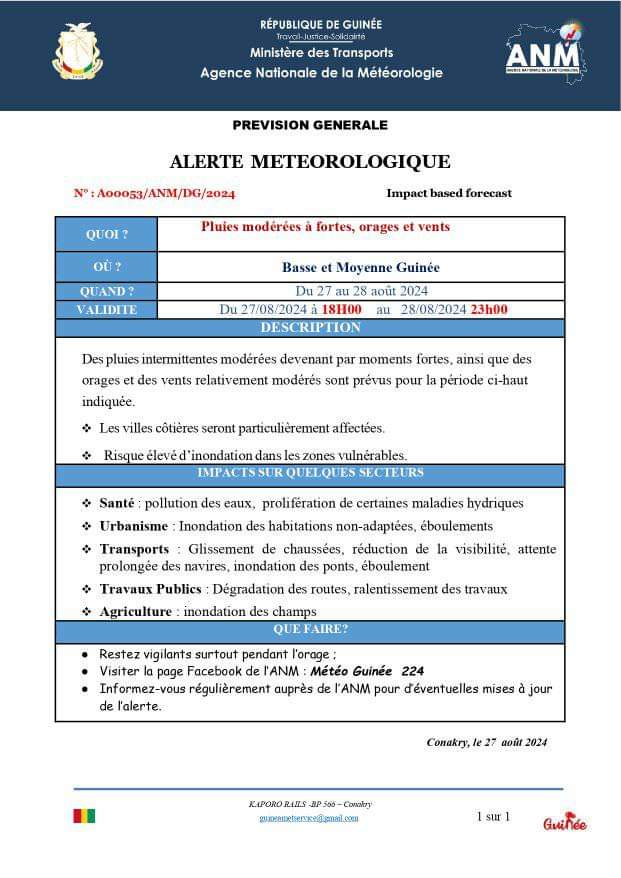 Alerte Méteorologique: Risque élevé d’inondations dans certaines zones (ANM)!!!