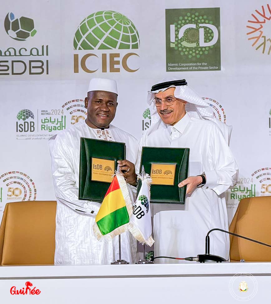 Les Assemblées annuelles du Groupe de la Banque Islamique de Développement (BID) se tiennent à Riyadh du 27 au 30 avril 2024. Ces rencontrent sont des événements majeurs. Hier lundi 29 avril, a eu lieu la signature de la Stratégie de Partenariat avec les Pays Membres (SPPM) entre le Ministre guinéen du Plan et de la Coopération Internationale, monsieur Ismaël NABE, le Gouverneur pays et Chef de la délégation guinéenne, et le Président de la BID. La cérémonie a connu la présence des Ministres guinéens de l’Économie et des Finances ainsi que celui des Infrastructures et des Travaux Publics.