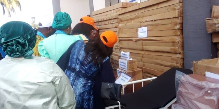 Selon la ministre Rose Pola Pricemou : « Ces équipes sont constituées de 40 décortiqueuses, 20 broyeuses, 20 presse à huile, ainsi que de petits matériels ; de 510 lits d’hospitalisation, de 170 tables d’accouchement, de 170 tables génycologiques, de 510 kits de soins après avortement, de 14 tables opératoires et des mannequins de démonstration en planification familiale », a-t-elle annoncé.