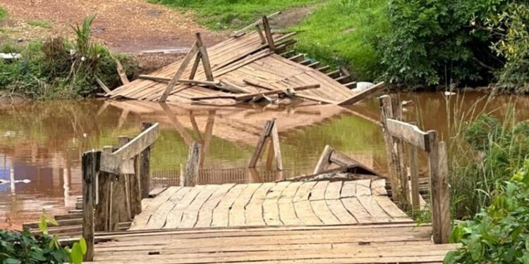 Ce pont en bois, dans un état de vétusté avancée depuis près de deux (2) ans, a finalement cédé sous l’effet des pluies diluviennes. Son effondrement a complètement désorganisé la vie quotidienne des populations locales : l’accès aux services sociaux et aux marchés est devenu quasiment difficile.