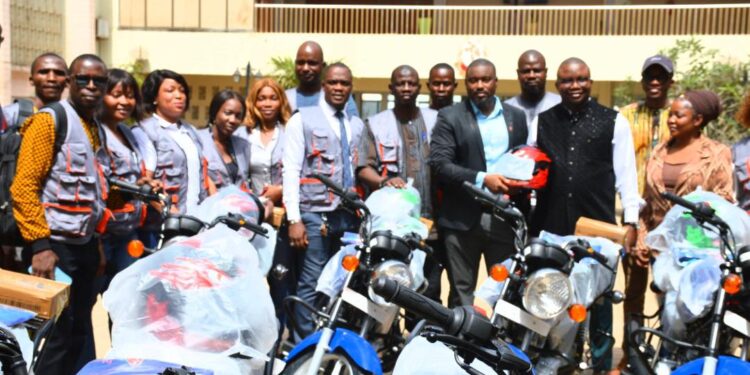 Le Président du Conseil National de la Transition a doté la Direction de la communication et de l’information( DCI-CNT), d’engins roulants. Ces engins vont faciliter la réalisation des reportages à Conakry et à l’intérieur du pays. La remise a eu lieu ce mercredi 26 février 2025 dans l’enceinte du palais du peuple, en présence des membres du Cabinet du Président du CNT et des travailleurs de la Direction de la communication et de l’information (DCI).