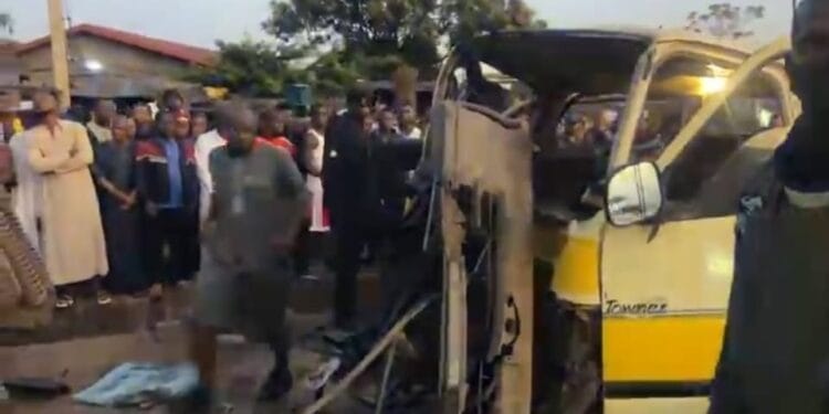 Selon des témoins de cet accident, ‘’c’est un minibus (Magbana) en vive allure qui est venu entrer sur un camion stationné près des rails de Sonfonia, sur la T7’’.