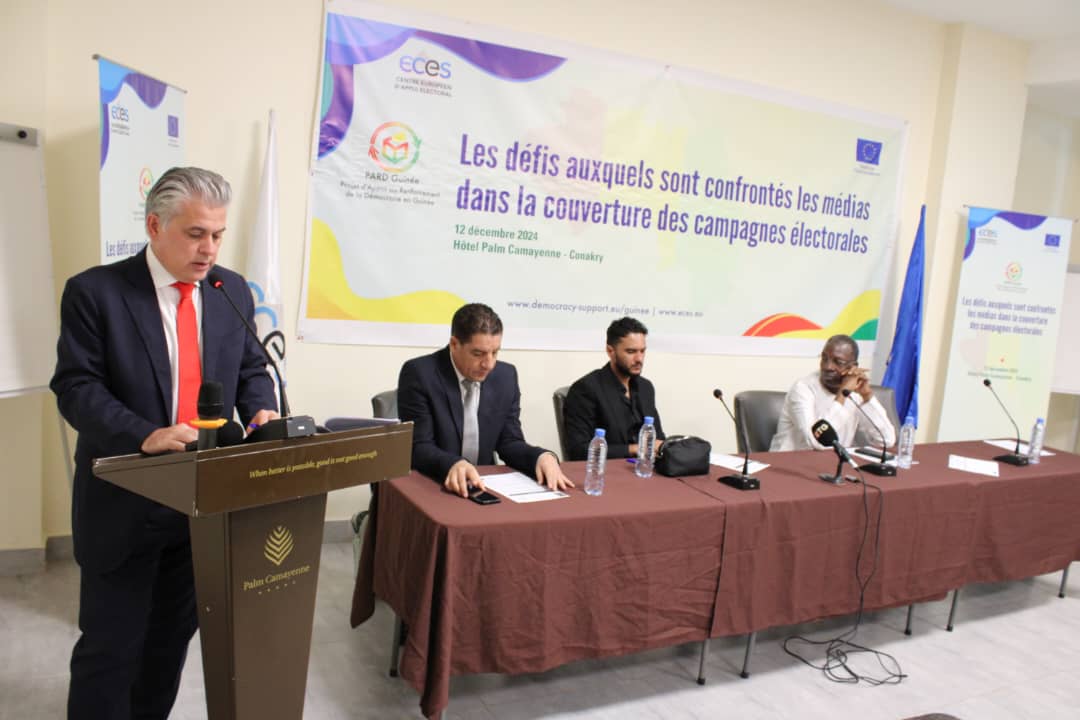Un atelier de formation à l’intention des journalistes et cadres du CNT, de la direction générale des radios rurales et de la HAC, a été organisé le jeudi 12 décembre 2024, à Conakry par le centre européen d’appui électoral (ECES), à travers le projet d’appui au renforcement de la démocratie en guinée (PARD), sous financement de l’Union européenne. Le thème portait sur : « Les défis auxquels sont confrontés des médias dans la couverture des campagnes électorales ». Objectif, amener les commissaires de la haute autorité de la communication (HAC) et les hommes de médias à une bonne collaboration dans la couverture médiatique.