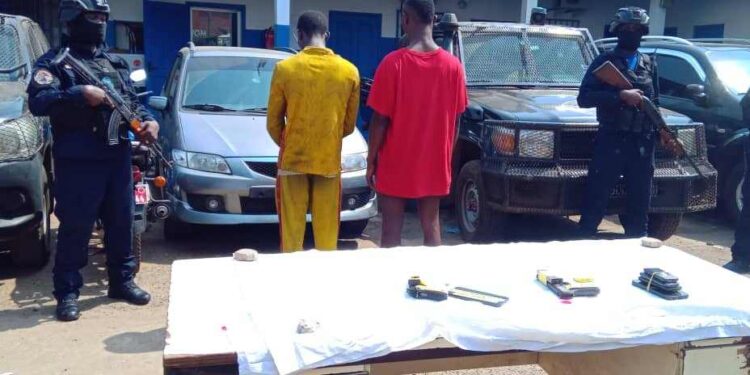 Deux (2) présumés bandits ont été présentés devant la presse ce mardi 07 janvier 2024 par la Direction centrale de la police judiciaire ( DCPJ), dans leurs locaux à Kaloum.