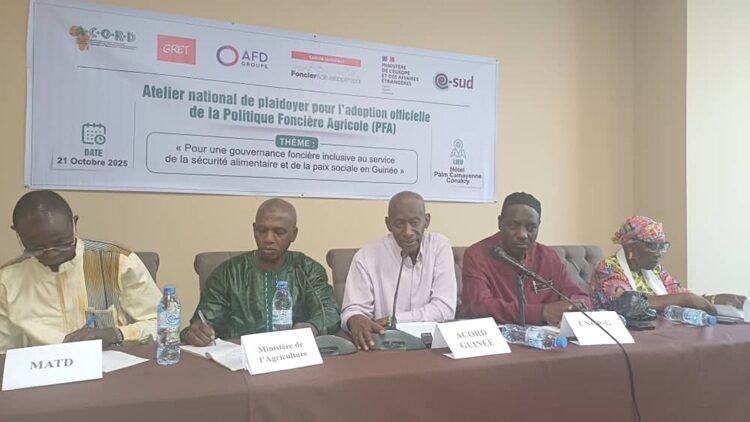 C’est dans cette dynamique que la Plateforme Multi-Acteurs, la Confédération Nationale des Organisations Paysannes de Guinée (CNOP-G) et ACORD Guinée, avec l’appui du Comité Technique Foncier et Développement (CTFD 4), ont organisé un atelier national de plaidoyer pour l’adoption de la PFA et la finalisation d’une Politique Foncière Nationale (PFN) et la prise en compte des préoccupations des communautés.