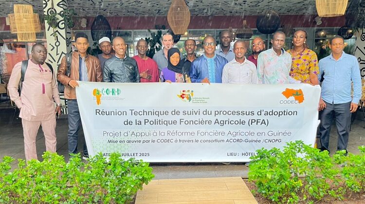 L’ONG ACORD-Guinée et la CNOP-G, en collaboration avec le Collectif des ONG pour la Défense des droits des Communautés (CODEC), ont organisé le mardi 29 juillet 2025, la réunion technique de suivi du processus d’adoption de la Politique Foncière Agricole (PFA) à Conakry.