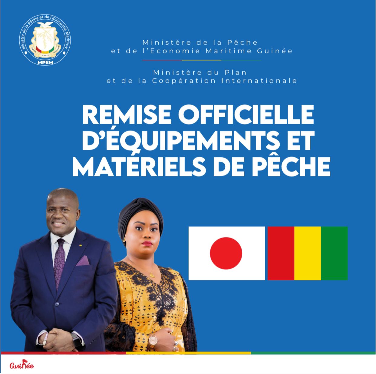 Le gouvernement japonais a offert des équipements de pêche au Ministère de la Pêche et de l’économie Maritime. La cérémonie de remise de ces matériels composé de 20 motos, de 200 balles de nappes de filets, d’une presse hydraulique et d’un groupe électrogène, a eu lieu ce vendredi 26 juillet 2024 à Conakry, en présence du Ministre du Plan et de la Coopération Internationale et de son homologue de la pêche. Il s’inscrit dans le cadre de la coopération bilatérale entre ces deux pays et permettra à l’amélioration, la sécurité alimentaire et nutritionnelle des populations, l’employabilité des jeunes et des femmes et l’exploitation rationnelle des produits halieutiques.