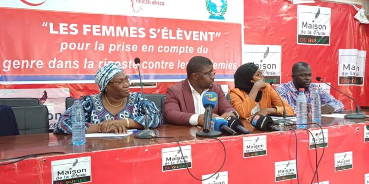 Les défis et solutions liés à la santé et à l’autonomisation des femmes en Guinée et l’importance de l’égalité́ de genre dans la relance post COVID-19 font partis des sujets débattus au cours de la conférence de presse organisée par la Coalition des Femmes Leaders de Guinée et le Centre d’Excellence d’Afrique pour la Prévention, le Contrôle des Maladies Transmissibles. Selon Dr GROVOGUI FASSOU MATHIAS. « Ce projet a été financé par le Centre de recherche pour le développement international du Canada et visé, comme beaucoup d’autres projets, à produire d’abord des évidences sur la situation des femmes dans le contexte de la COVID, mais essentiellement dans le contexte des crises sanitaires. Parce que les femmes, partout dans le monde, sont généralement confrontées à des inégalités qui sont très spécifiques à leur genre, que ce soit maintenant dans le monde du travail, que ce soit dans les ménages, que ce soit dans la communauté. Ça concerne 52% de la population guinéenne » a-t-il souligné.