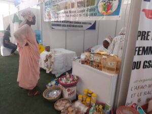 Du côté des stands, elles sont nombreuses des femmes venues du Cameroun, du Mali, du Burkina Faso et d’autres du Sénégal pays hôte à exposer leurs différents produits et articles divers. Parmi ces dames, figure Madame Bienette de Cameroun.