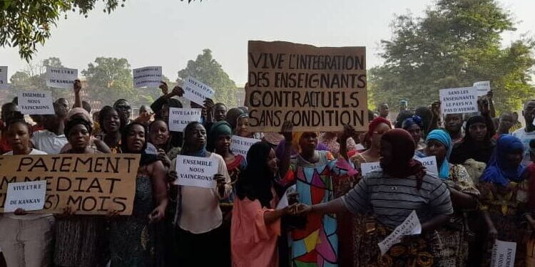 Quant à la seconde, il s’agit de celle des enseignants contractuels, ceux-ci réclament des arriérés de salaire. Les marcheurs détiennent des pancartes sur lesquelles on peut lire : « nous sommes fatigués, payez nos salaires ». « A bas Mory Condé, A bas Guillaume Hawing ».