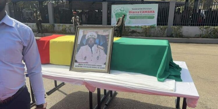 La cérémonie funèbre du Général de division, Diarra Camara, ancien Chef d’état-major général des armées, a eu lieu lundi, 12 février 2024 au Bataillon du quartier général du camp Almamy Samory Touré (BQG).