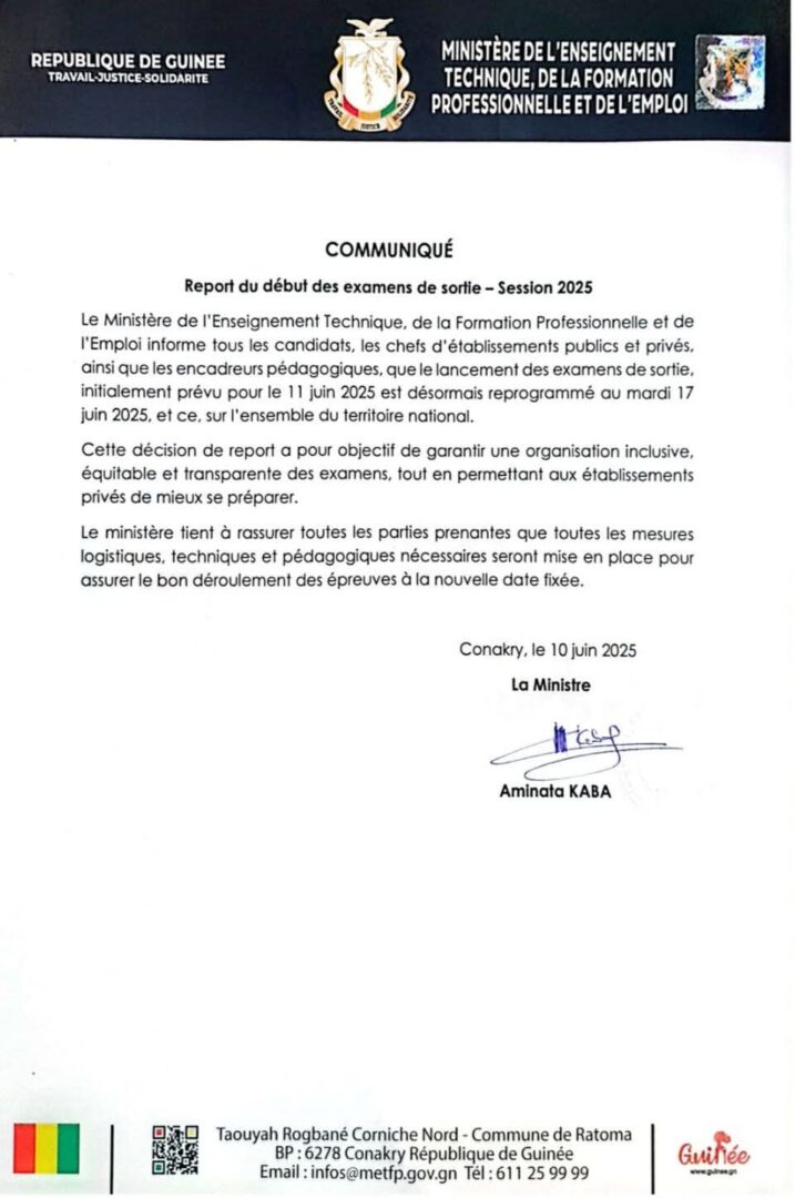 Dernière minute: La date des examens de sortie ajournée (les raisons)