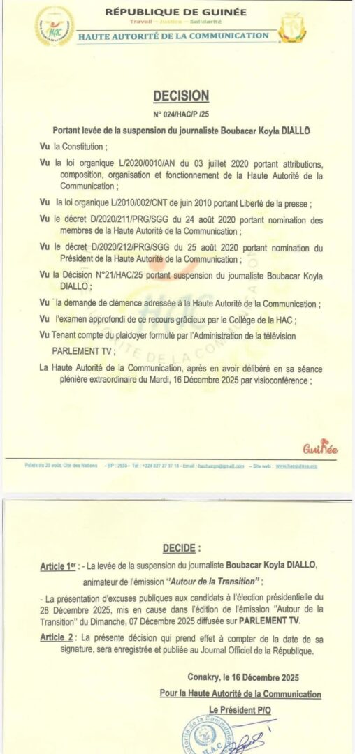 Non classé Guinée/Examens professionnels 2025: Le taux de réussite est de 92,06 % (Ministre François Bourouno) 4 décembre 2025