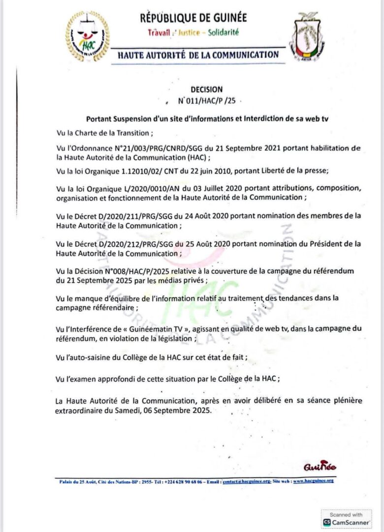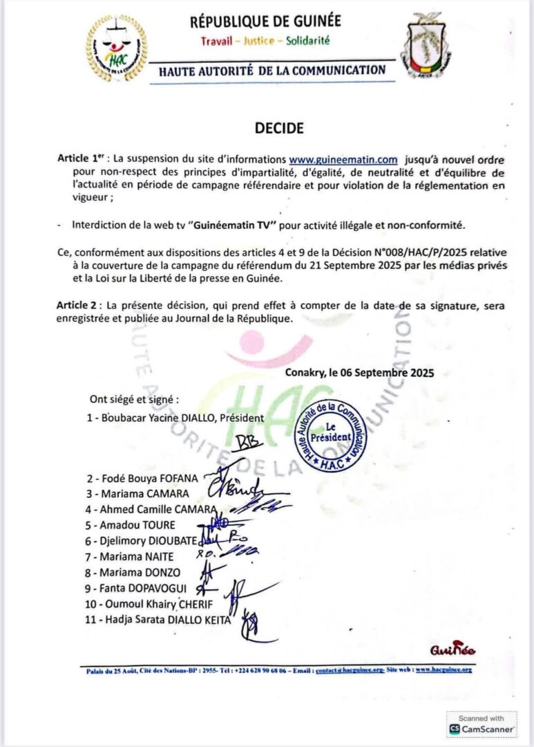 Dernière minute: le site Guineematin.com suspendu par la HAC (décision)