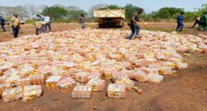 C’est une première dans la préfecture de Dinguiraye, où une grande quantité de jus Energy ‘’24 heures’’ a été détruite ce mercredi 17 mai 2023, par les autorités à savoir : les services de défense et de sécurité, des responsables des directions de l’Environnement, du Commerce, ceux de la Chambre de commerce et de la Mairie de la commune urbaine. L’endroit choisi a été celui identifié par le service du commerce, non loin du parc de bétails, à la sortie de la ville de Dinguiraye, en partance pour Banora.