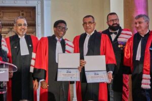 Ce prestigieux titre de Doctorat Honoris Causa, décerné par l’École de Commerce de Lyon, a été attribué à Monsieur le Ministre Alpha Bacar Barry en reconnaissance de son engagement exceptionnel dans le développement du système éducatif de la République de Guinée, ainsi qu’à Son Excellence Monsieur le Président de Sao Tomé et Principe, Carlos Vila Nova, pour son engagement dans la transformation structurelle de son pays.