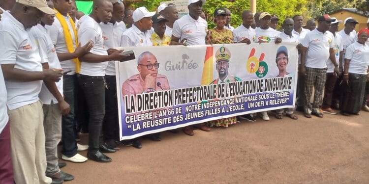 A l’instar des autres préfectures du pays, Dinguiraye n’est pas restée en marge de cet anniversaire. En prélude à cette célébration, les autorités à tous les niveaux ont organisé plusieurs activités allant à : ‘’l’organisation d’un match de gala, qui a opposé les filles des 2 grands lycées de la ville ; en passant par la célébration d’une femme modèle ; suivie de la projection d’un film documentaire retraçant l’histoire de l’indépendance et de la tenue d’une conférence avec pour thème : ‘’le rôle de la femme dans la naissance et le développement de la nation et le tout clôturé par l’assainissement’’.