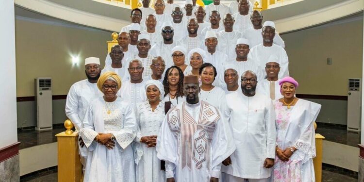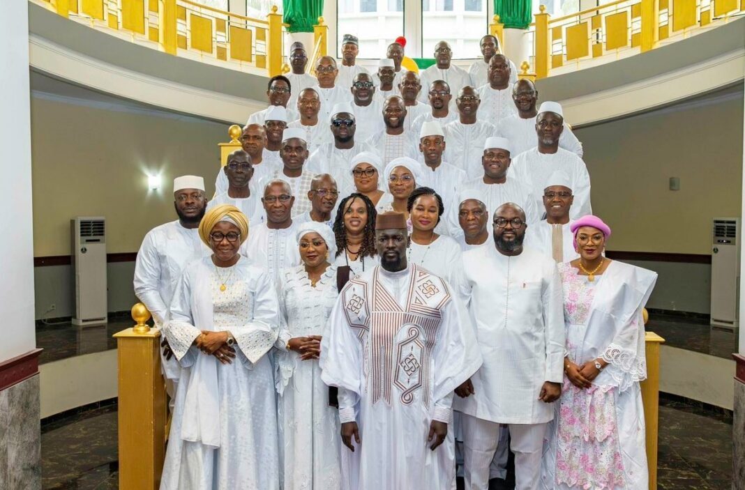 Les membres du Gouvernement, conduits par le Premier ministre, Chef du Gouvernement, Monsieur Amadou Oury BAH, et les membres du cabinet présidentiel notamment le Ministre secrétaire Général de la Présidence le Général Amara CAMARA et le Ministre Directeur de cabinet de la présidence Monsieur Djiba DIAKITÉ, ont présenté ce mardi 6 janvier 2026 leurs vœux de Nouvel An à Son Excellence Monsieur Mamadi DOUMBOUYA, Président de la République à l’occasion d’une cérémonie solennelle hautement symbolique.