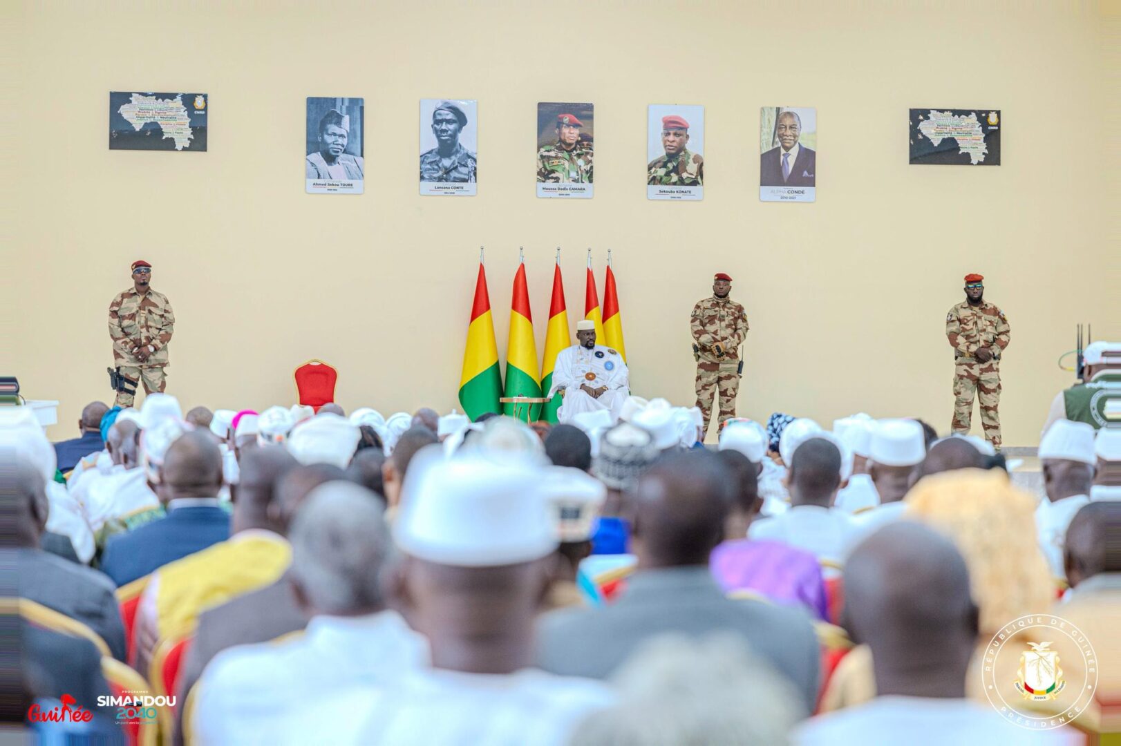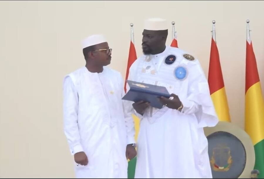 Le Président du conseil national de la transition (CNT), Honorable Dr Dansa Kourouma a remis ce jeudi 26 juin 2025, le projet de Nouvelle Constitution au Président de la République, Général Mamadi Doumbouya. La cérémonie solennelle a eu lieu au Palais Mohamd V, en présence des membres du CNRD, ceux du Gouvernement, des ambassadeurs accrédités en Guinée, des acteurs politiques, de la société civile et de plusieurs invités.