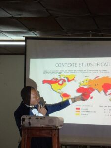 Devant un grand nombre d’étudiants, Dr Pivi Vohou a présenté un exposé sur les modes de transmission de l’hépatite B. Il a expliqué que le virus se transmet surtout par le sang et aussi par les sécrétions génitales.