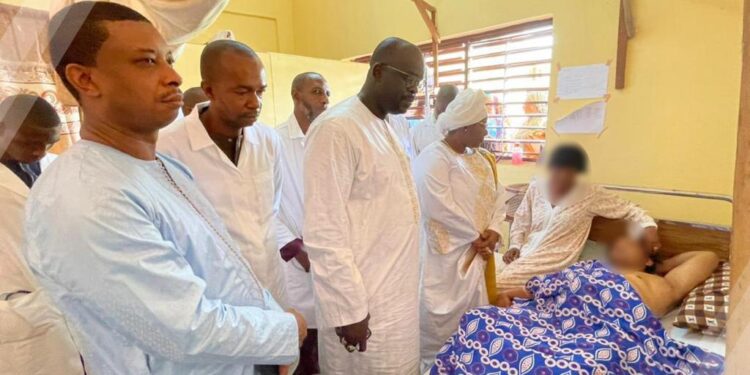 Reçue et guidée dans la salle du blessé par le Concessionnaire de l’Hôpital Donka, Monsieur Alpha Diallo et l’Administrateur Général dudit Hôpital, Dr Denis Bernard RAICHE, la Ministre a d’abord présenté les condoléances du gouvernement au malade ainsi qu’à son épouse présente à ses côtés suite à la disparition tragique de leur fillette, elle a aussi instruit fermement aux médecins de prendre toutes les précautions relevant du possible pour que le malade recouvre sa santé. À défaut, le patient sera évacué à l’extérieur du pays.