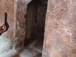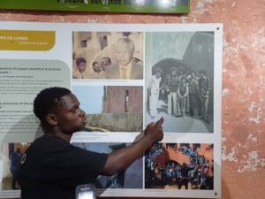 Mais le pire, c’est qu’une fois enceinte, ils n’entendaient pas les neuf mois de l’accouchement. Ça veut dire qu’à cinq mois, ils creusaient un trou, ils mettaient son ventre, et la fille recevait 29 coups de fouet sur le dos pour déclencher l’accouchement. Mais elle survivait à 50%. Le bébé, si c’était un garçon, on l’appelait mulâtre. Si c’était une fille, signore. Et c’est la seule cellule auparavant qui avait des toilettes sur place. Les jeunes filles épargnaient des chaînes parce qu’elles devenaient des piles légères. Là, c’était les hommes qui pèsaient moins de 60 kilos, les inaptes temporaires. C’est là où ils les engraissaient pendant trois mois, voire trois mois et demi, avec l’haricot de chez nous appelé le niébé, mélangé avec l’huile de palme, pour la force et la résistance. Les récalcitrants, les esclaves rebelles étaient dans cette petite cellule. Ici, les gardes s’en foutaient du nombre. Donc, leur seule préoccupation était de pouvoir refermer la porte.