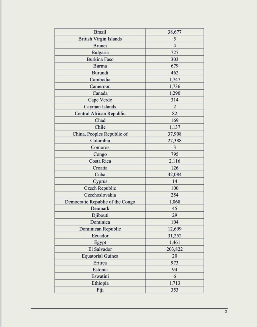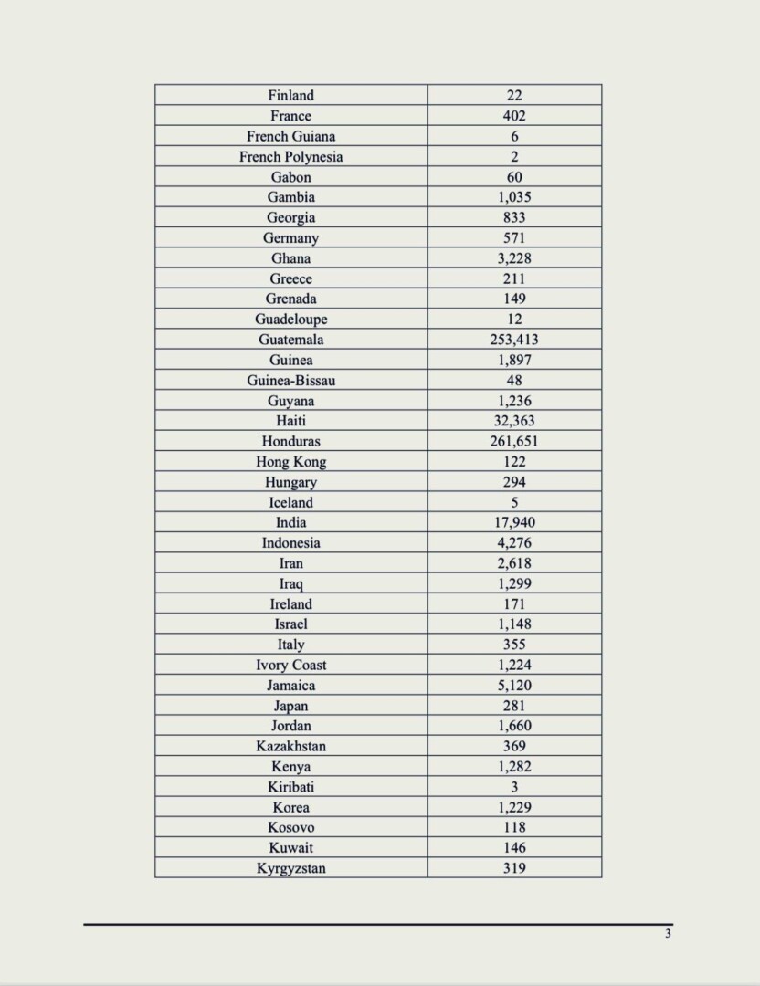 Selon la liste de l’Agence américaine de l’immigration et des douanes (ICE) en date du 24 novembre 2024, 1 445 549 étrangers ont été enregistrés. Parmi eux, 1 897 étaient de nationalité guinéenne, soit 0,13 % du total.