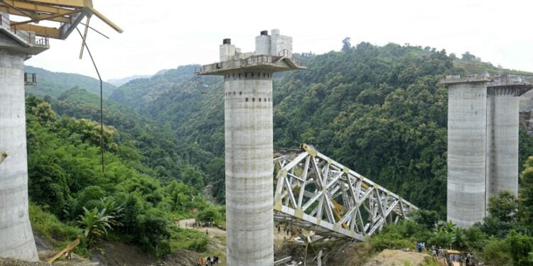 Le ministre en chef du Mizoram, Zoramthanga a publié une vidéo sur X, anciennement connu sous le nom de Twitter, montrant une structure métallique qui se détache de colonnes imposantes pour tomber dans une vallée boisée en contrebas.