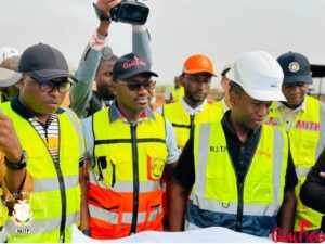 En plus de ses Conseillers Juridique et Chargé de Missions, le Patron des Infrastructures et des Travaux Publics était entouré du Directeur National des Routes Nationales, du Directeur Général du Fonds d’Entretien Routier (FER SA), de l’Administration et Contrôle des Grands Projets (ACGP), de la Mission de Contrôle, du Groupement d’entreprises en charge de l’exécution du projet et des techniciens du Département.