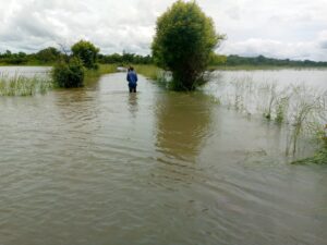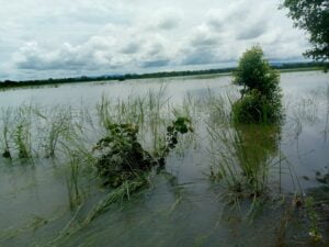 Les plaines sont inondées, on ne voit même pas le riz par endroit et certaines routes sont coupées qui servent d’accès aux différents champs de riz. Prions le bon pour ne pas que les agriculteurs pleurent.