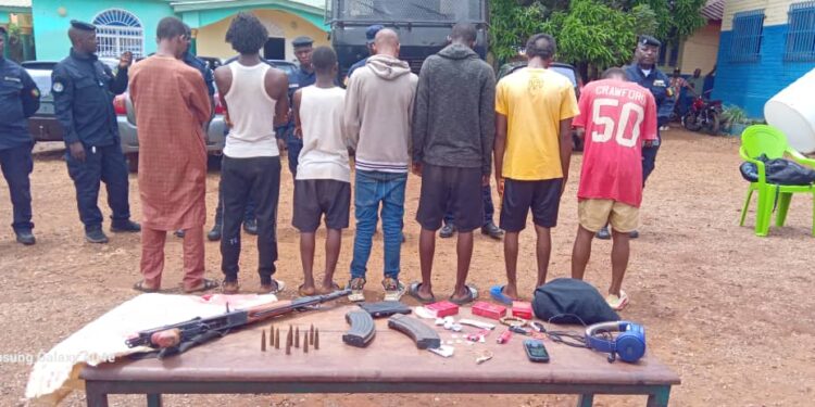Selon nos confrères de l’AGP, ces individus présumés auteurs de crimes sont Youssouf Makanéra, Abdourahmane Oularé, Damara Camara, Mohamed Touré, Alpha Oumar Diallo, Issa Kanté et Aboubacar Keïta. Ils ont été interpellés avec un fusil d’assaut type pistolet automatique (PMAk), deux (2) boîtes de chargeurs et quelques quantités de drogue Kush et de chanvre indien.