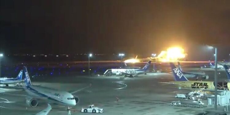 Selon la NHK, 367 passagers et 12 membres d’équipage qui se trouvaient à bord de l’avion, qui a brûlé sur la piste de l’aéroport Haneda de Tokyo, ont été évacués.