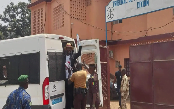 Le Tribunal correctionnel de Dixinn, a condamné le syndicat-journaliste, Sekou Jamal PENDESSA d’une lourde peine, 6 mois de prison dont 3 ferme et au paiement d’une amende de 500 mille francs guinéens. Le verdict a été rendu ce vendredi 23 février 2024, contre le secrétaire général du secrétaire général du syndicat des professionnels de la presse de Guinée (SPPG). Il est poursuivi pour des faits : « de provocation à un attroupement non armée, atteinte et menace de porter atteinte à l’ordre public, à la sécurité publique, à l’intégrité et à la dignité des individus par le biais d’un système informatique ».