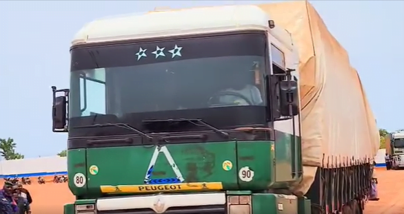 Après la coupure du cordon par le Préfet et le Directeur Général du CGC, le tout premier camion a fait son entrée après le passage vers le scanner et à la douane.
