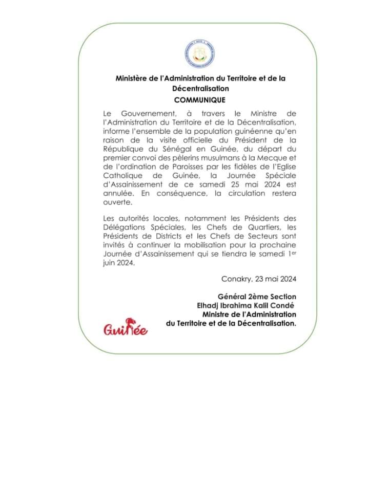 La circulation ne sera plus interdite le samedi 25 mai (Communiqué MATD)!!!