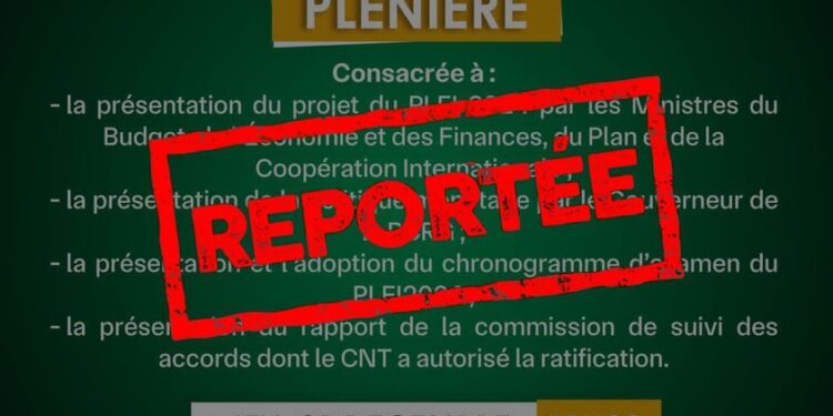 Initialement prévue ce jeudi 21 décembre 2023, la plénière sur la présentation de la Loi de Finances Initiale 2024, a été reportée par le conseil national de la transition (CNT).