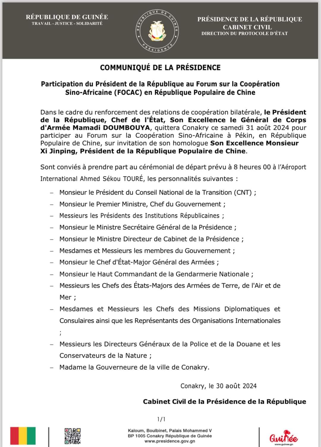Le Général Mamadi Doumbouya attendu en Chine (Communiqué)!!!