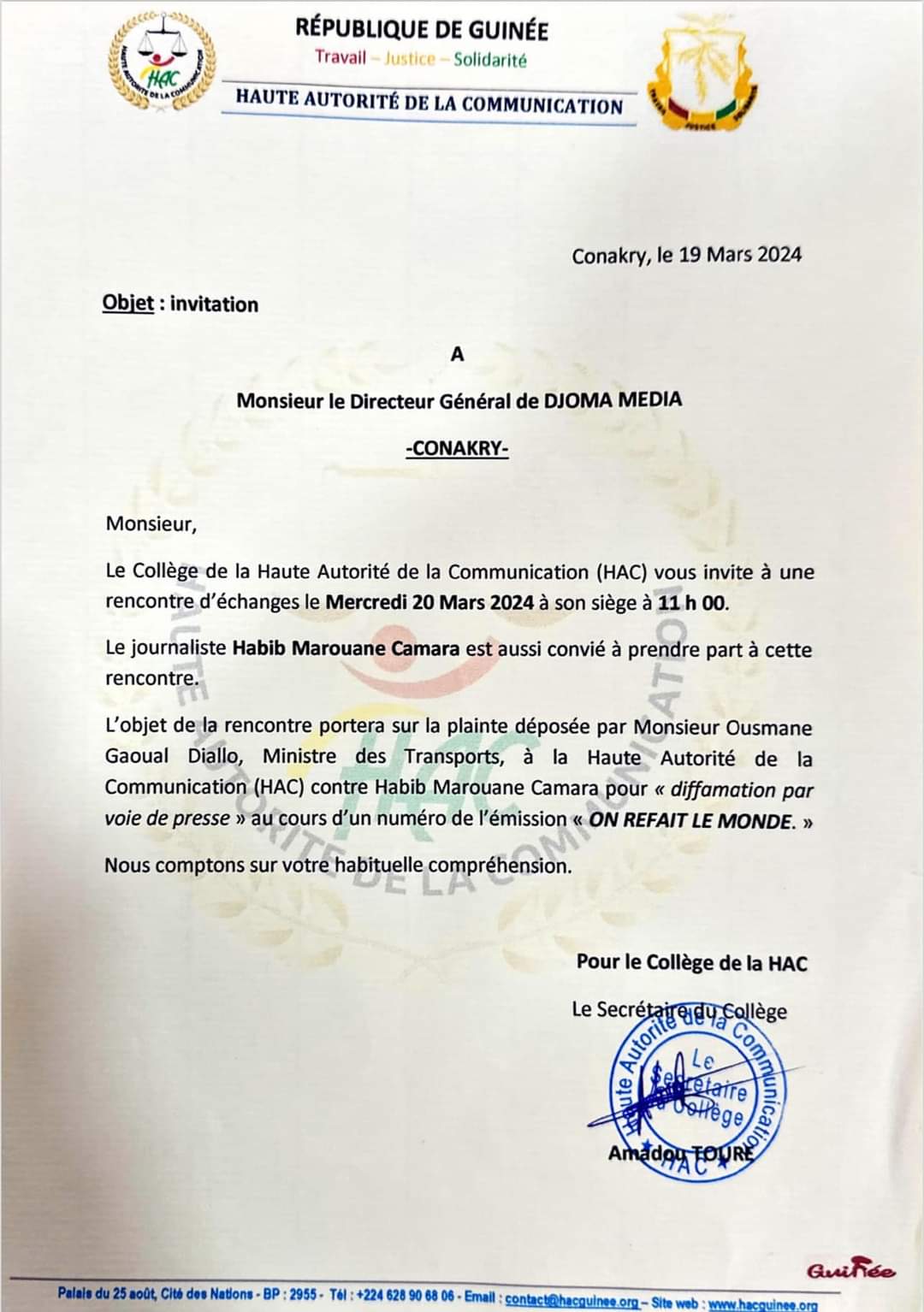 Le Ministre Ousmane Gaoual porte plainte contre le Journaliste Habib Marouane à la HAC!!!