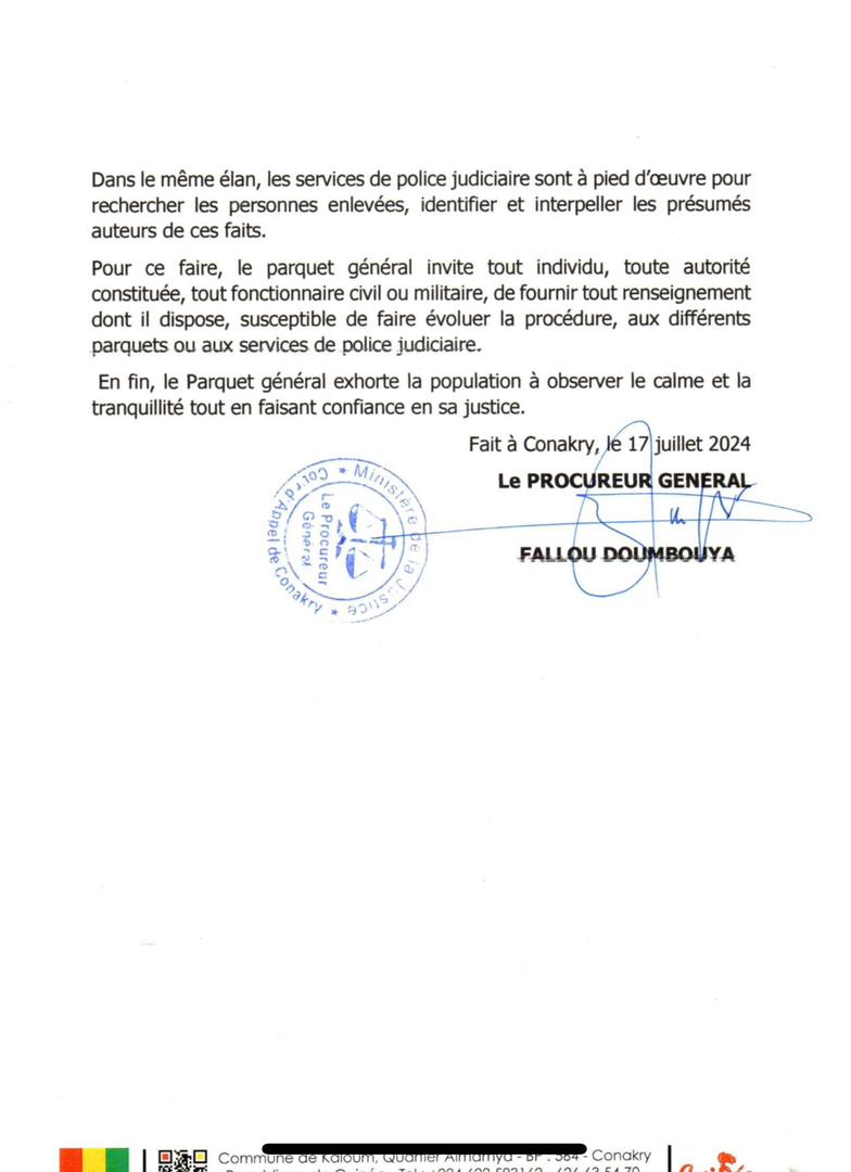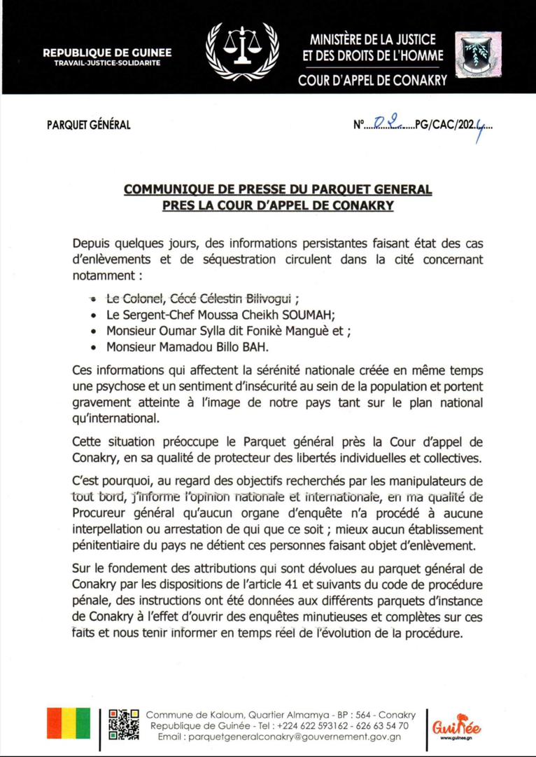 Tags: Le Parquet Général près la Cour d’Appel de Conakry réagi face à la ‘’disparition