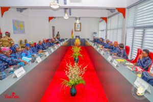 Vêtus de la tenue traditionnelle ‘Leppi’ du Foutah, les membres du gouvernement ont participé au Conseil ordinaire des ministres cet après-midi au Palais Mohammed V, sous la présidence du Chef de l’État, le Colonel Mamadi Doumbouya, qui a lui-même incarné cette identité culturelle de la République de Guinée.