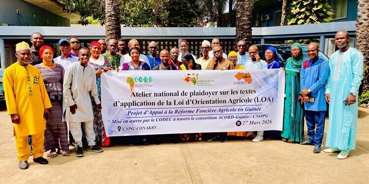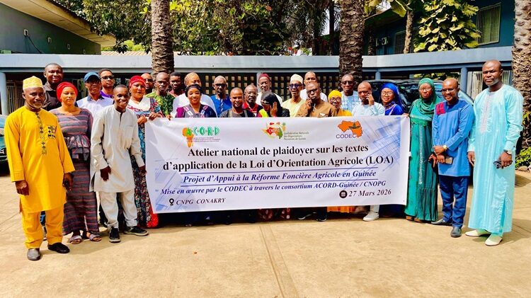 Dans ce contexte, l’ONG ACORD-Guinée, en partenariat avec la CNOP-G à travers le CODEC, a organisé le 27 mars 2026 à Conakry un atelier national de plaidoyer, dans le cadre du projet « Appui à la Réforme Foncière Agricole : Inclusion, Dialogue et Plaidoyer ».