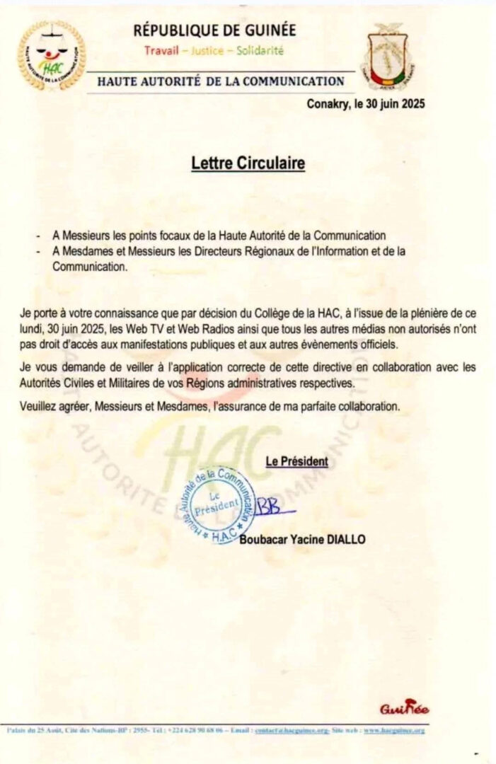 Dans une décision en date du lundi 30 juin 2025, la Haute Autorité de la Communication (HAC) a annoncé l’interdiction d’accès des télés web, radios web, ainsi que tous les médias non autorisés aux manifestations publiques et autres événements officiels.