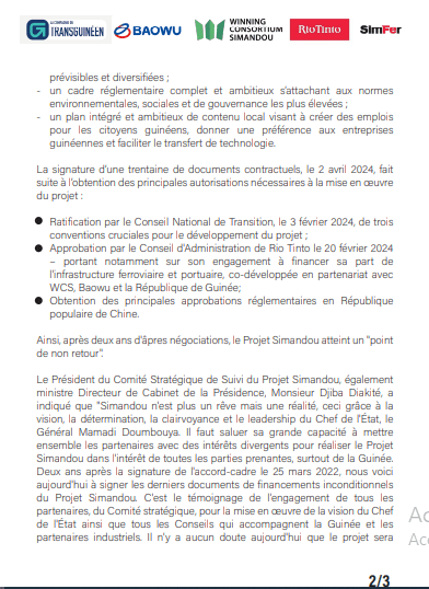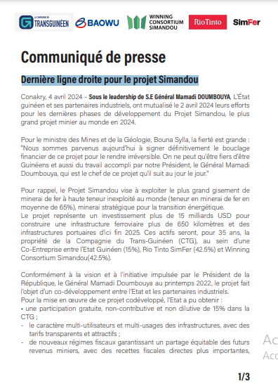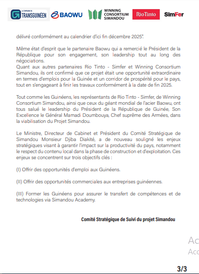 Mines : Dernière ligne droite pour le projet Simandou, selon le comité stratégique (Communiqué) !!!