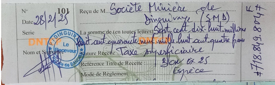 Au titre de la taxe superficifiaire exercice 2025, 1 milliard 663 million 478 milles 881 GNF ont été versés aux collectivités qui abritent sa concession minière dans ces mêmes préfectures. Quatre (04) collectivités sont bénéficiaires de ce montant reparti comme suit :