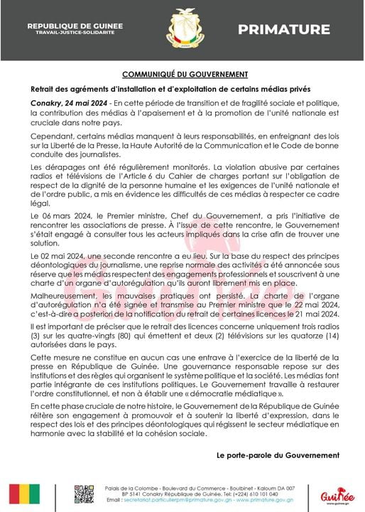 Presse : Voici les raisons du retrait des agréments de certains médias privés, selon le Gouvernement (Communiqué) !!!