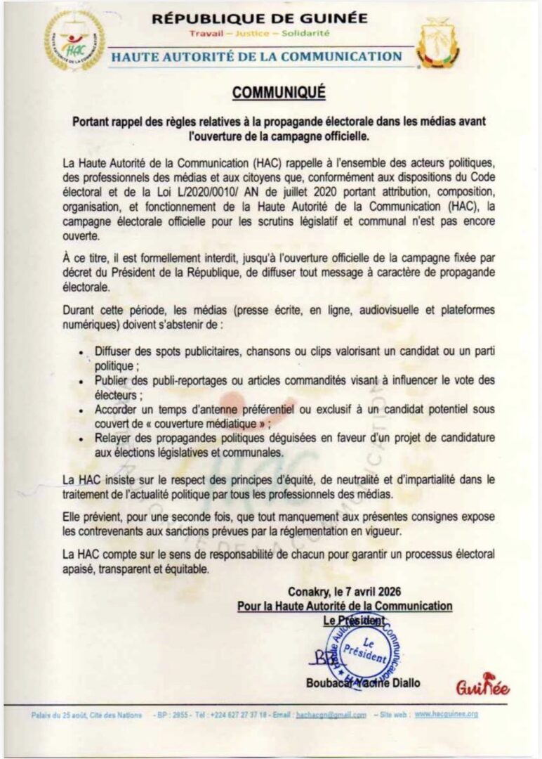 ACTUALITÉ Elections législatives et communales : la DGE annonce l’ouverture des demandes d’accréditation pour des observateurs (communiqué) 7 avril 2026