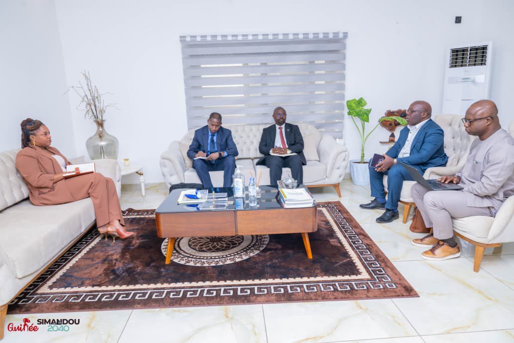 𝗖𝗼𝗻𝗮𝗸𝗿𝘆, 𝗹𝗲 𝟭𝟳 𝗳é𝘃𝗿𝗶𝗲𝗿 𝟮𝟬𝟮𝟲, la Ministre de la Femme, de la Famille et des Solidarités, 𝗠𝗮𝗱𝗮𝗺𝗲 𝗣𝗮𝘂𝗹𝗶𝗻𝗲 𝗔𝗱𝗲𝗹𝗶𝗻𝗲 𝗣𝗮𝘁𝗿𝗶𝗰𝗶𝗮 𝗟𝗮𝗺𝗮𝗵, a reçu une mission de la Banque mondiale, en visite en Guinée pour la revue du Projet NAFA.