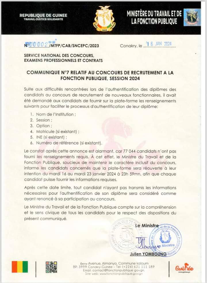 Recrutement à la fonction publique : Plus de 77 mille candidats n’ont pas fourni de renseignements requis, voici leur sort (communiqué du Ministère du Travail) !!!